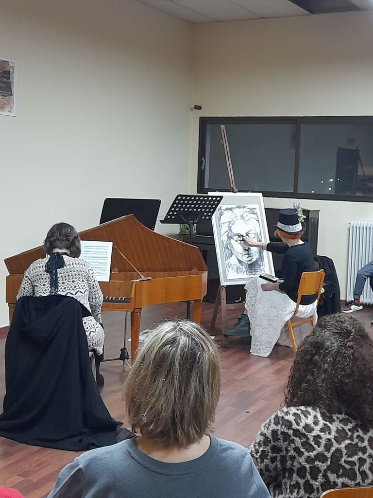 Κεντρικό πρόσωπο της εκδήλωσης ήταν η Αμέλια Μαρία Στοιάν Τριανταφύλλου, καταξιωμένη πιανίστα και κλαβεσινίστα, η οποία παρουσίασε ένα σπάνιο όργανο, το σπινέτο, και ερμήνευσε έργα του μπαρόκ ρεπερτορίου. Παράλληλα, η εικαστικός Μαρία Δερδεβάνη ξεκίνησε και ολοκλήρωσε ένα εικαστικό έργο κατά τη διάρκεια της συναυλίας, δημιουργώντας μια άμεση διάδραση μεταξύ των τεχνών. Το φιλόμουσο κοινό παρακολούθησε με ευλαβική προσήλωση τη διαδικασία αυτής της δημιουργικής όσμωσης, όπου η μουσική μεταμορφωνόταν σε εικόνα και η ζωγραφική αποκτούσε ρυθμό και μελωδικότητα.
