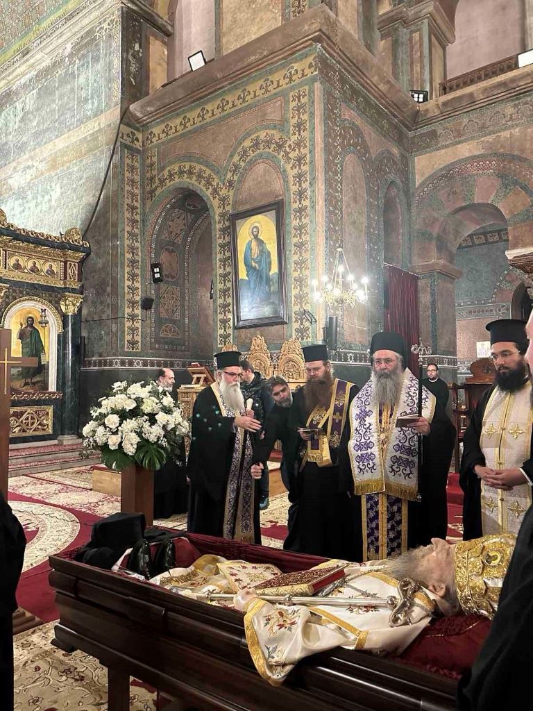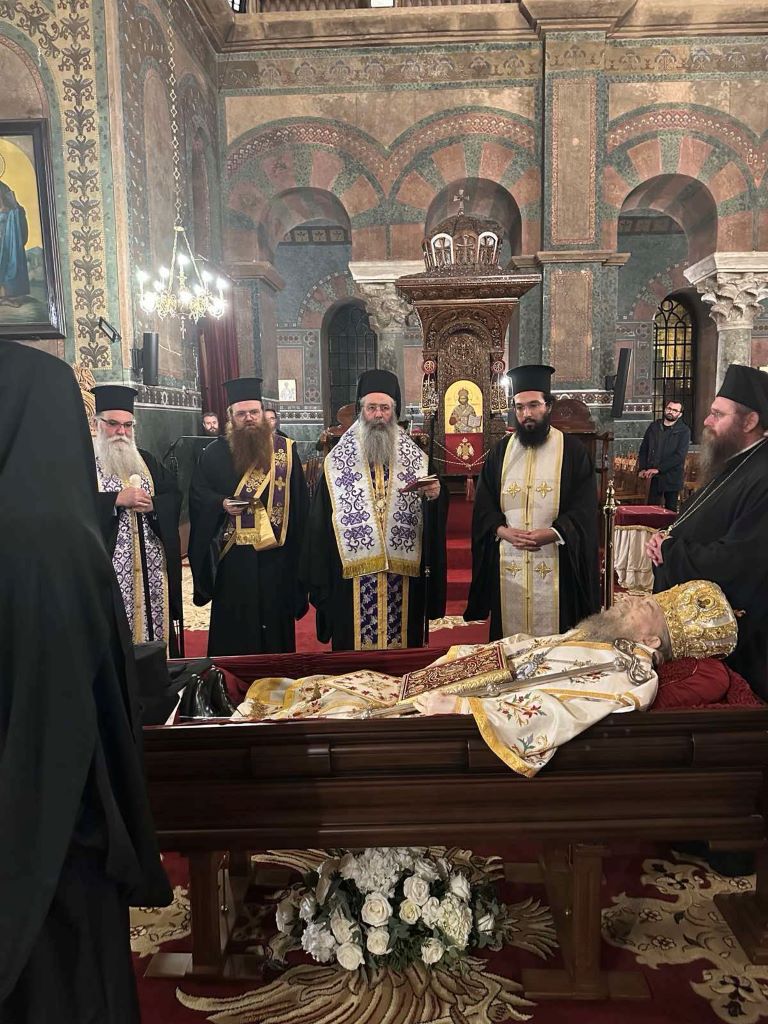 Στη συνέχεια τέλεσε τρισάγιο και συλλυπήθηκε τους παρισταμένους κληρικούς, εξαίροντας την προσωπικότητα του μακαριστού Ιεράρχου.