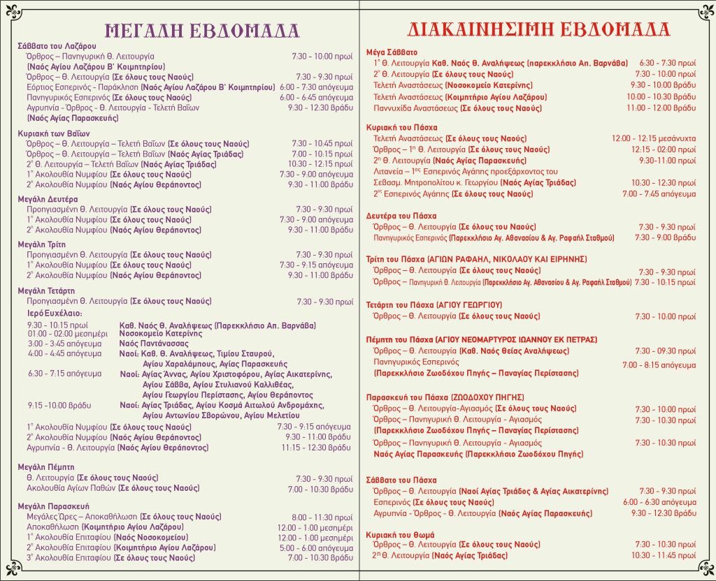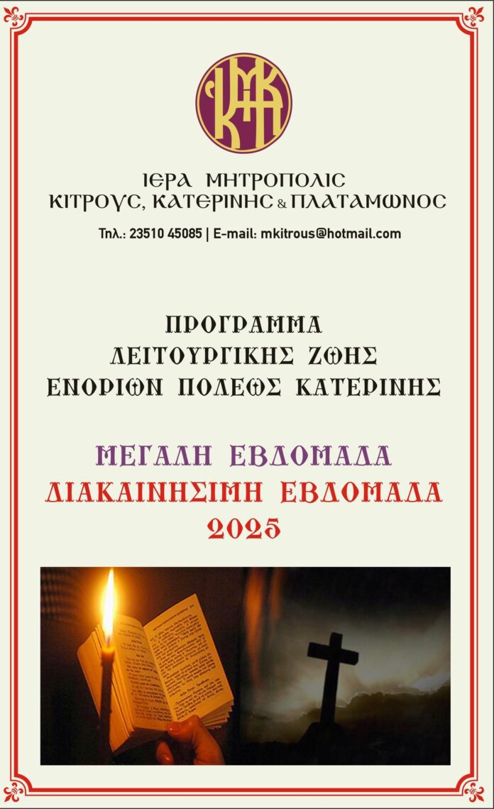 Πρόγραμμα Λειτουργικής Ζωής Ενοριών πόλεως Κατερίνης για την Μεγάλη Εβδομάδα και τη Διακαινήσιμη Εβδομάδα 2025