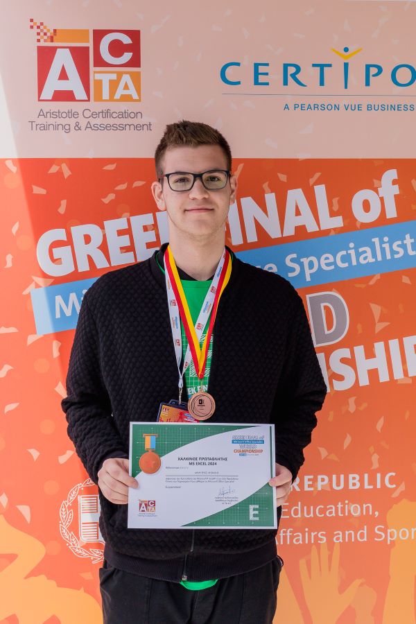 Δημήτρης Λεωνίδης – Ο «πρωτοπόρος» της Πιερίας, μαθητής Β’ Λυκείου από το Λύκειο Αιγινίου, επιστρέφει για δεύτερη συνεχόμενη χρονιά στον τελικό, με την εμπειρία του περσινού Χάλκινου μεταλλίου στο Excel. Την προετοιμασία του ανέλαβε για ακόμα μία χρονιά η Πρωταθλήτρια Ελλάδας στο Excel, Αλκμήνη Γαϊταντζή.
