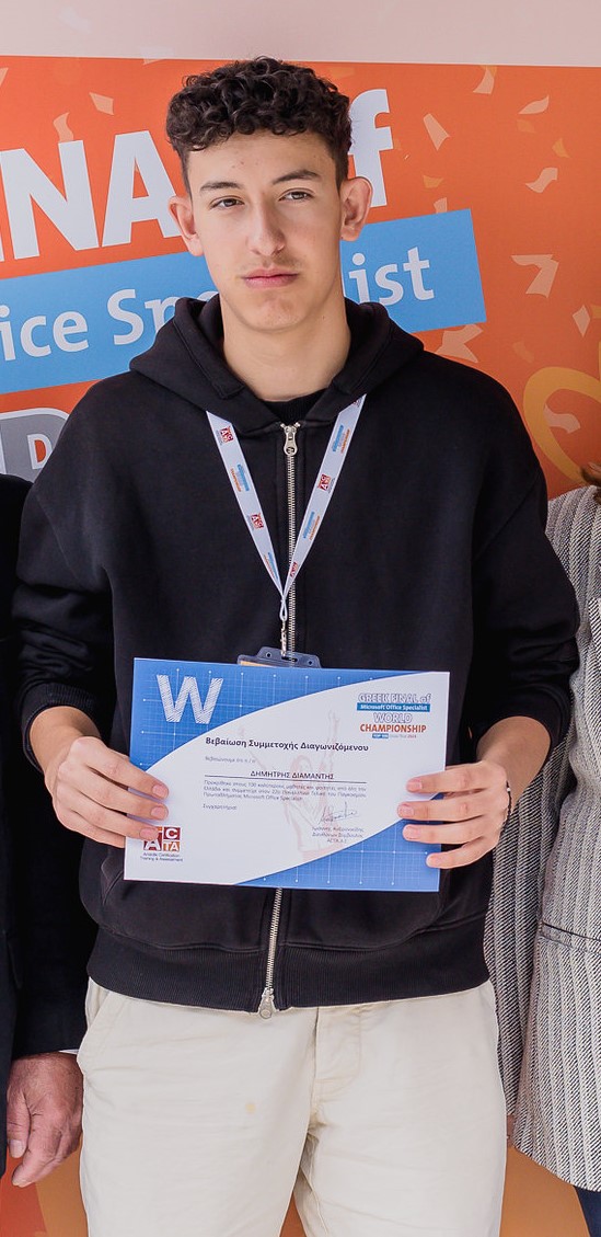 - Δημήτρης Διαμαντής – Μαθητής Γ’ Λυκείου από το Λύκειο Κάτω Μηλιάς, διαγωνίζεται στην ενότητα Word. Πέρσι κατέκτησε την 9η θέση πανελλαδικά, και φέτος στοχεύει ακόμη ψηλότερα, υπό την καθοδήγηση της Γεωργίας Μαρουσιάδου. Το δίδυμο έχει θέσει ξεκάθαρο στόχο: Πανελλήνιο μετάλλιο.