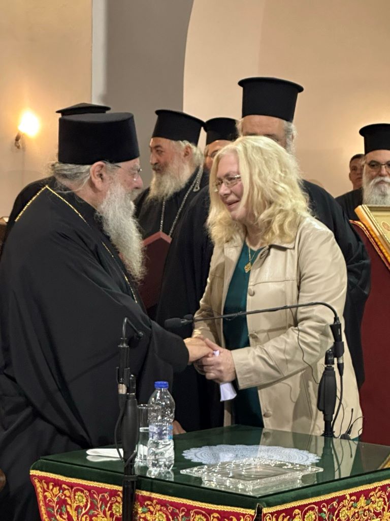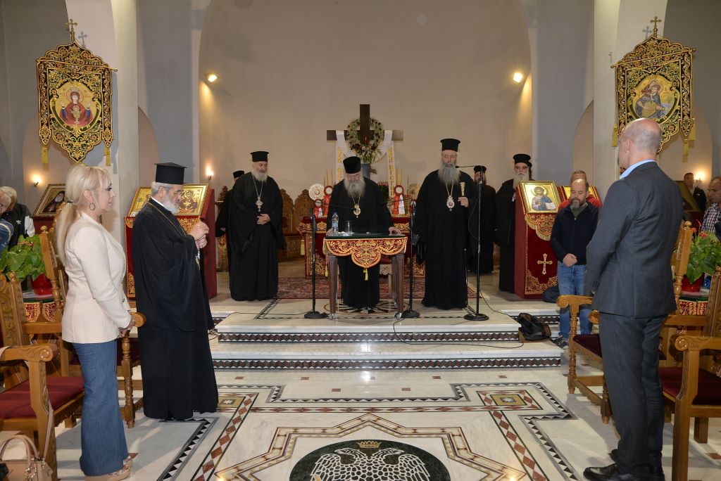 Πριν την Ομιλία, ο Σεβασμιώτατος Ποιμενάρχης κ. Γεώργιος καλωσόρισε τον φιλοξενούμενο Αρχιερέα και τη συνοδεία του, τον ευχαρίστησε για τον κόπο του ταξιδιού και την προθυμία συμμετοχής στην Εκδήλωση.