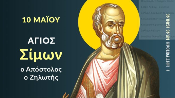 Ο Άγιος Απόστολος Σίμων ονομάσθηκε ζηλωτής, λόγω της θέρμης και του ζήλου με τον οποίο κήρυττε το λόγο του Ευαγγελίου. Καταγόταν από την Κανά της Γαλιλαίας και είναι γνωστός ως Σίμων ο Κανανίτης (ή Ναθαναήλ ή Βαρθολομαίος – υιός του Θολομαίου). Μετά την ανάληψη του Χριστού και τη χάρη της Πεντηκοστής, ο Σίμων επιδόθηκε σε ένα ευρύ ιεραποστολικό έργο.