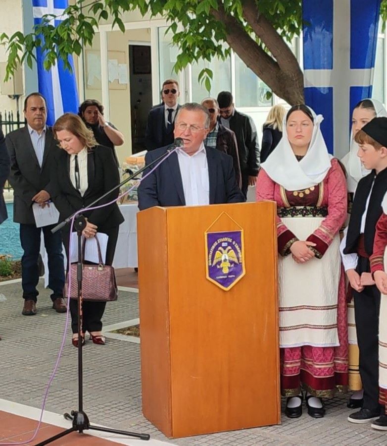 Ο Πρόεδρος του Συλλόγου, Ιωάννης Χρηστακίδης, στην ομιλία του, υπογράμμισε τη σημασία της ανέγερσης της προτομής ως πράξη τιμής και ευγνωμοσύνης για την υπέρτατη θυσία του Συνταγματάρχη.