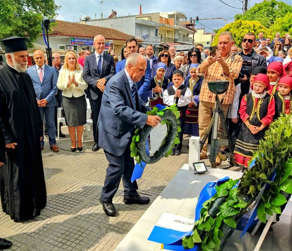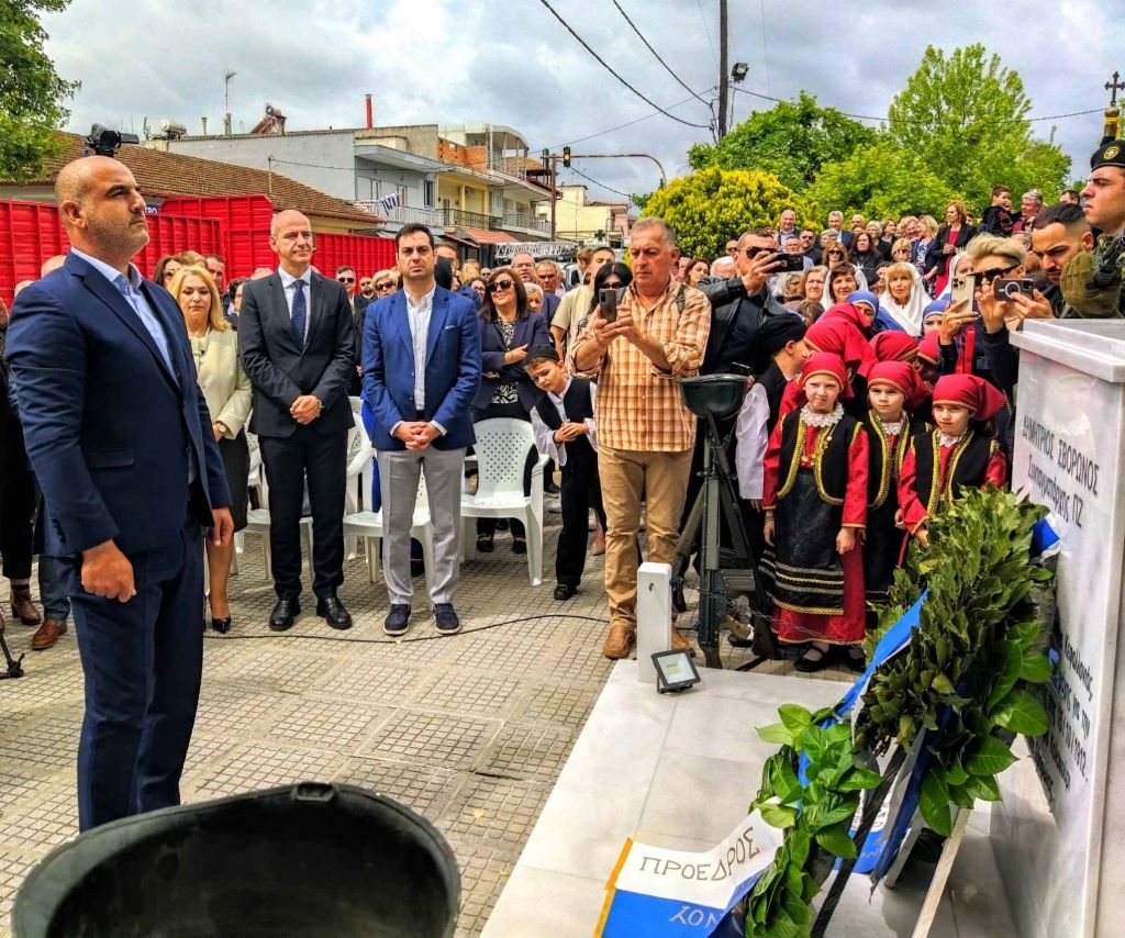 Στο χαιρετισμό του ο Δήμαρχος Κατερίνη, Ιωάννης Ντούμος τόνισε μεταξύ άλλων: «[…] Σήμερα, τον τιμούμε και τον τοποθετούμε στην καρδιά της ιστορίας μας, καθώς το μεγαλειώδες παράδειγμά του εξακολουθεί να φωτίζει τον δρόμο μας, διδάσκοντάς μας την αληθινή σημασία του αγώνα για την ελευθερία της Μακεδονίας, για την ίδια την εθνική μας αξιοπρέπεια. Η προτομή του, θα στέκει εδώ ως ένας εθνικός φάρος, οδηγώντας τα βήματά μας.