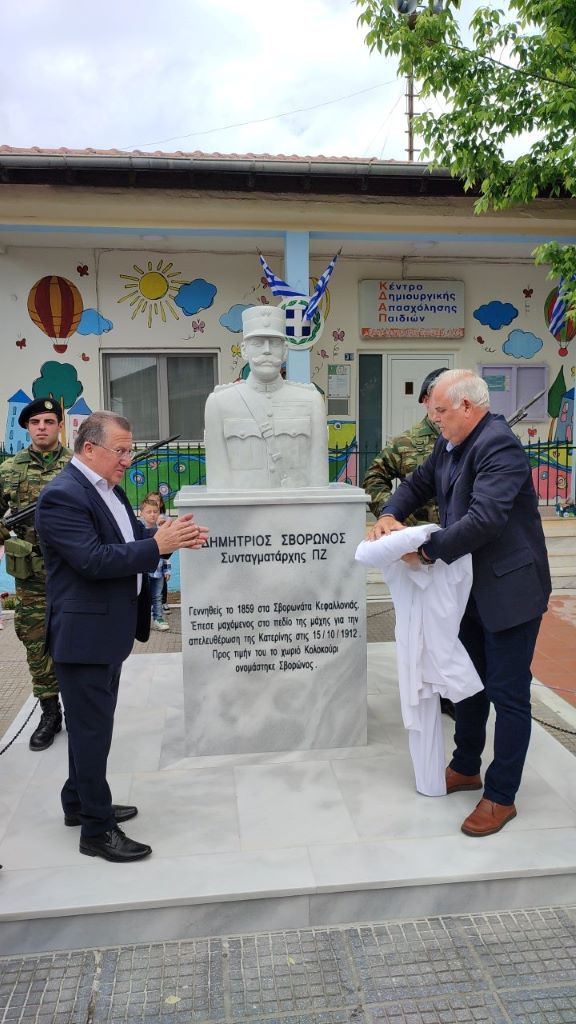 Με μια φορτισμένη από μνήμη και εθνική υπερηφάνεια τελετή, πραγματοποιήθηκαν σήμερα το πρωί τα αποκαλυπτήρια της προτομής του Συνταγματάρχη Δημητρίου Σβορώνου, στην Κοινότητα Σβορώνου. Ο αείμνηστος Συνταγματάρχης, καταγόμενος από τα Σβορωνάτα Κεφαλληνίας, έπεσε ηρωικά στη μάχη για την απελευθέρωση της Κατερίνης τον Οκτώβριο του 1912 και η σημερινή ιστορική ημέρα ήταν ένας ελάχιστος φόρος τιμής στον άνδρα που θυσίασε τη ζωή του για την Πατρίδα.