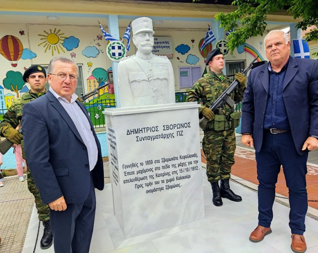Με μια φορτισμένη από μνήμη και εθνική υπερηφάνεια τελετή, πραγματοποιήθηκαν σήμερα το πρωί τα αποκαλυπτήρια της προτομής του Συνταγματάρχη Δημητρίου Σβορώνου, στην Κοινότητα Σβορώνου. Ο αείμνηστος Συνταγματάρχης, καταγόμενος από τα Σβορωνάτα Κεφαλληνίας, έπεσε ηρωικά στη μάχη για την απελευθέρωση της Κατερίνης τον Οκτώβριο του 1912 και η σημερινή ιστορική ημέρα ήταν ένας ελάχιστος φόρος τιμής στον άνδρα που θυσίασε τη ζωή του για την Πατρίδα.