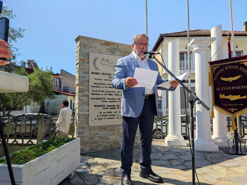 ενώ ακολούθησε η κατάθεση στεφάνων των φορέων στο Μνημείο των Πεσόντων Κρητών Μακεδονομάχων.
