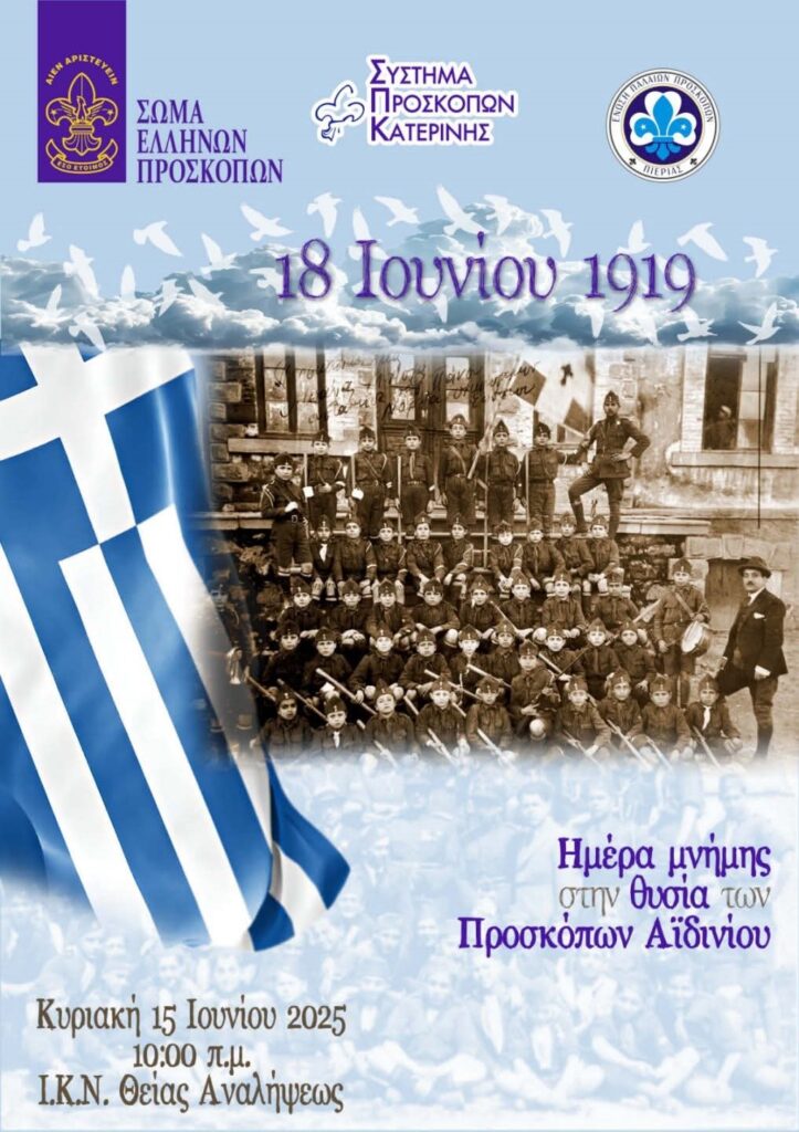 Κυριακή 15 Ιουνίου 2025 και ώρα 10:00 στον Ιερό Καθεδρικό Ναό Θείας Αναλήψεως θα πραγματοποιηθεί επιμνημόσυνη δέηση προς τιμή των αδικοχαμένων Προσκόπων στο Αϊδίνη της Μικράς Ασίας.