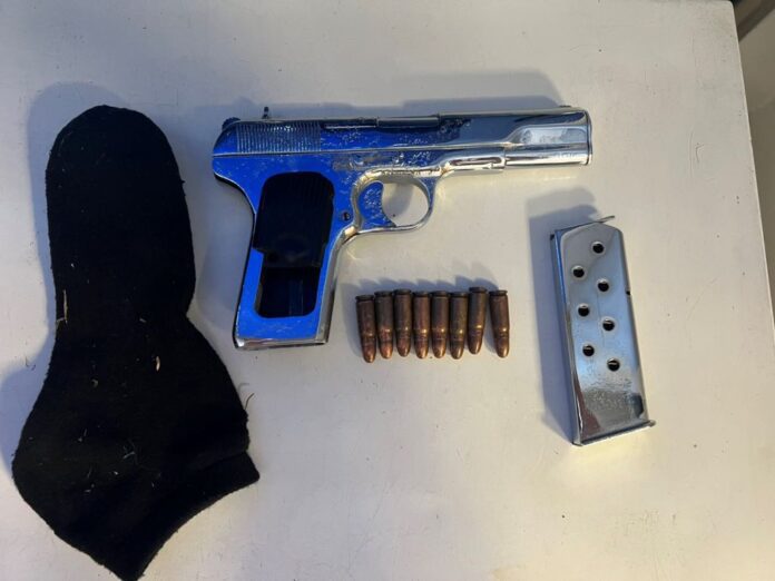 Συνελήφθη σήμερα (23 Ιουνίου 2025) τις πρώτες πρωινές ώρες σε περιοχή της Πιερίας, από αστυνομικούς της Ομάδας Πρόληψης και Καταστολής της Εγκληματικότητας της Υποδιεύθυνσης Δίωξης και Εξιχνίασης Εγκλημάτων Κατερίνης, ένας αλλοδαπός άνδρας, καθώς σε έλεγχο που πραγματοποιήθηκε σε όχημα που οδηγούσε, βρέθηκε επιμελώς κρυμμένο ένα πιστόλι, μαζί με γεμιστήρα που περιείχε 8 φυσίγγια, τα οποία και κατασχέθηκαν.