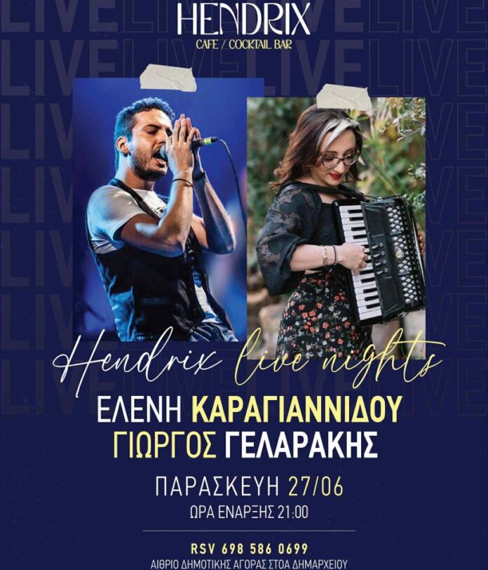 Ο Γιώργος Γελαράκης και η Λένα Καραγιαννίδου Live στο Hendrix Cafe – Cocktail Bar την Παρασκευή 27 Ιουνίου
