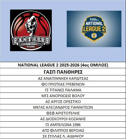 Οι ΠΑΝΘΗΡΕΣ Κατερίνης γράφουν ιστορία! Για πρώτη φορά στην πορεία του, ο σύλλογός μας θα συμμετάσχει στη National League 2, παίρνοντας μέρος στον ιδιαίτερα ανταγωνιστικό  4ο Όμιλο της διοργάνωσης.
