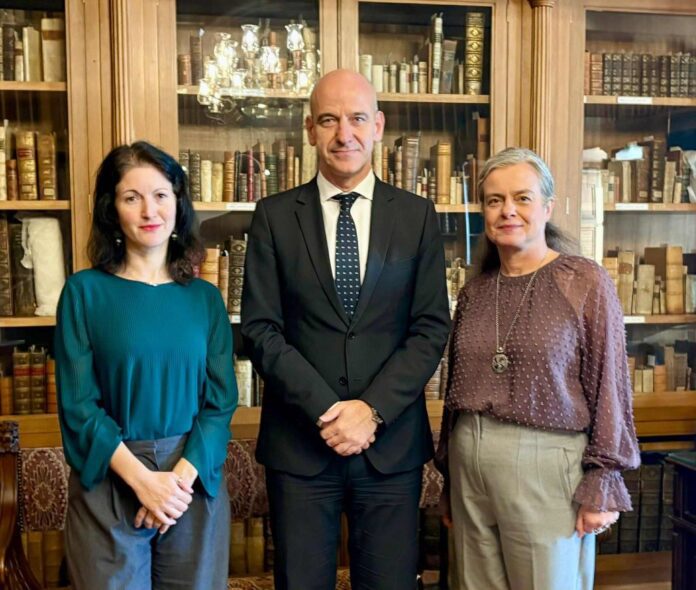 Μετά την εκλογή του, ο κ. Μπαραλιάκος αφού ευχαρίστησε τα μέλη της Επιτροπής για την εμπιστοσύνη τους, πραγματοποίησε συνάντηση εργασίας με την Αν. Προϊσταμένη της Διεύθυνσης της Βιβλιοθήκης κα Αθηνά Συναρέλη και την Αν. Προϊσταμένη της Γενικής Διεύθυνσης, Ηλεκτρονικής Διοίκησης, Βιβλιοθήκης και Εκδόσεων κα Μαρία Καμηλάκη προκειμένου να ενημερωθεί αναλυτικά για τη λειτουργία, τις δομές και τις προτεραιότητες της Βιβλιοθήκης