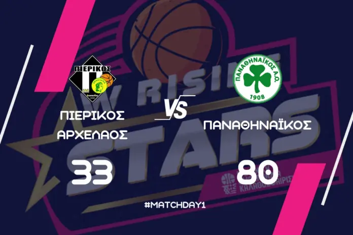Ο Πιερικός Αρχέλαος ηττήθηκε με 33-80 από τον Παναθηναϊκό, στο Κλειστό Γυμναστήριο του Εθνικού Αθλητικού Κέντρου Βόλου, σε αγώνα για την 1η αγωνιστική του W Rising Stars.