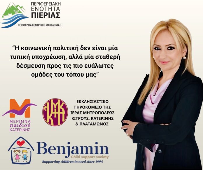 Η Περιφερειακή Ενότητα Πιερίας αποδεικνύει για ακόμη μία φορά το κοινωνικό της πρόσωπο, ενισχύοντας ουσιαστικά δομές που επιτελούν σημαντικό έργο για παιδιά, οικογένειες και ηλικιωμένους στον νομό. Συγκεκριμένα, εγκρίθηκε η διάθεση πίστωσης ύψους 20.000 ευρώ προς τον Φιλανθρωπικό Σύλλογο «Μέριμνας Παιδιού Κατερίνης» για την κάλυψη δαπανών θέρμανσης, καυσίμων κίνησης και υλικών σίτισης, ενέργεια που συμβάλλει καθοριστικά στη συνέχιση της καθημερινής φροντίδας και φιλοξενίας των παιδιών που στηρίζει η δομή.
