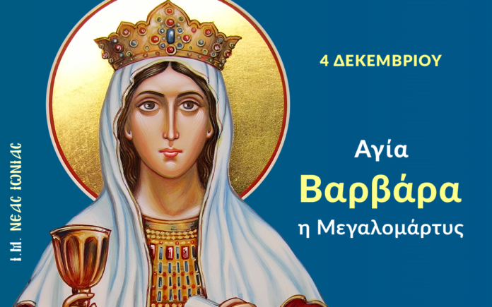 Η Αγία Βαρβάρα έζησε κατά τους χρόνους του αυτοκράτορος Μαξιμιανού (286 – 305 μ.Χ.) και ήταν κόρη του ειδωλολάτρη Διοσκόρου ο οποίος ήταν από τους πιο πλούσιους ειδωλολάτρες της Ηλιουπόλεως.