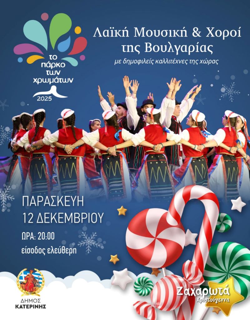 Τη δυνατότητα να απολαύσουν τραγούδια, χορούς & λαϊκά παραμύθια της Βουλγαρίας, θα έχουν οι επισκέπτες του Πάρκου των Χρωμάτων, την Παρασκευή 12 Δεκεμβρίου & ώρα 20:00. Ένα πολιτιστικό πρόγραμμα, που υλοποιήθηκε με την οικονομική υποστήριξη της ΕΕ (Next Generation) και παρουσιάζει σε όλη την Ευρώπη, τις αξίες, την ομορφιά και την ποικιλομορφία της βουλγαρικής λαογραφίας.