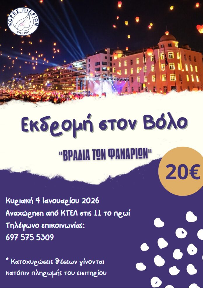 Ο Σύλλογος Κόρες Πιερίων διοργανώνει εκδρομή στον μαγευτικό Βόλο, για να ζήσουμε όλοι μαζί τη μοναδική Βραδιά των Φαναριών 🏮