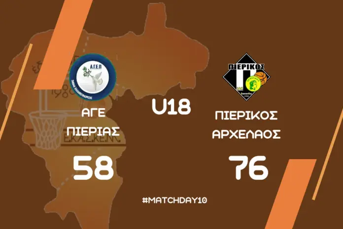 Πρωτάθλημα Εφήβων ΕΚΑΣΚΕΜ (α’ φάση – 10η αγωνιστική): ΑΓΕ Πιερίας – ΣΦΚ Πιερικός Αρχέλαος 58-76
