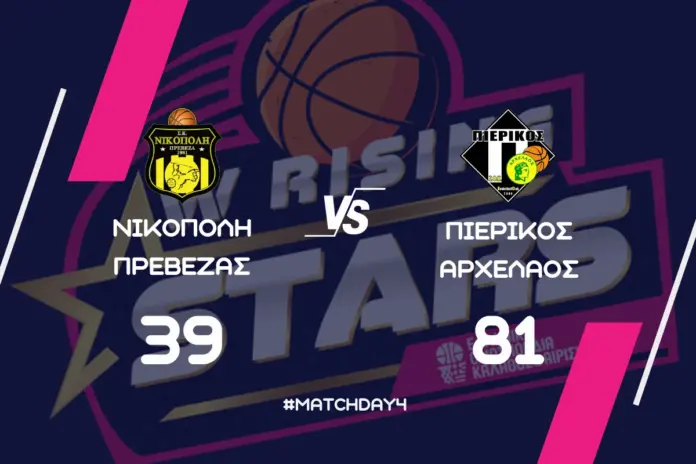 Ο Πιερικός Αρχέλαος επικράτησε με 81-39 της Νικόπολης Πρέβεζας, στο Κλειστό Γυμναστήριο Επταπυργίου, σε αγώνα για την 4η αγωνιστική του W Rising Stars.