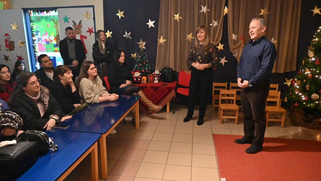 Συνεχάρη θερμά τόσο τα παιδιά όσο και τους εργαζόμενους για την εξαιρετική δουλειά που επιτελείται, επισημαίνοντας ότι τέτοιες γιορτές δεν αποτελούν απλώς μια παράσταση, αλλά είναι η στιγμή που αναδεικνύεται η σημασία της συνεργασίας, της δημιουργικότητας και της ζεστής οικογενειακής ατμόσφαιρας που επικρατεί στους Δημοτικούς Βρεφονηπιακούς Σταθμούς.
