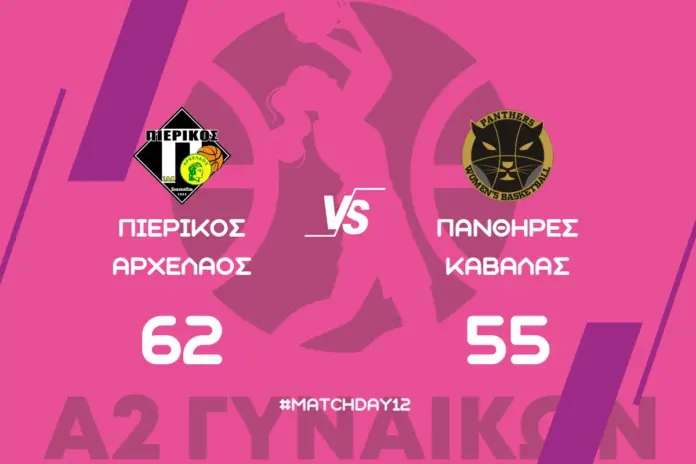 Ο Πιερικός Αρχέλαος επικράτησε με 62-55 των Πανθήρων Καβάλας στο Κλειστό Γυμναστήριο Σιδηροδρομικού Σταθμού Κατερίνης σε αγώνα για τη 12η αγωνιστική του 2ου ομίλου της Α2 Εθνικής Κατηγορίας Γυναικών.