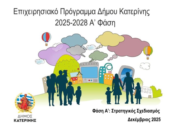 Ο Δήμος Κατερίνης στο πλαίσιο της σύνταξης του νέου Επιχειρησιακού Προγράμματος 2025-2028, ανακοινώνει ότι θέτει σε δημόσια διαβούλευση το Σχέδιο του Στρατηγικού Σχεδιασμού του Δήμου, για την περίοδο 2025-2028, το οποίο εγκρίθηκε με την υπ’ αριθ. 467/2025 (ΑΔΑ: 9ΚΒΕΩΕΤ-ΩΞΟ) Απόφαση του Δημοτικού Συμβουλίου, σύμφωνα με την ισχύουσα νομοθεσία. Το πλήρες κείμενο έχει αναρτηθεί στην ιστοσελίδα του Δήμου www.katerini.gr .