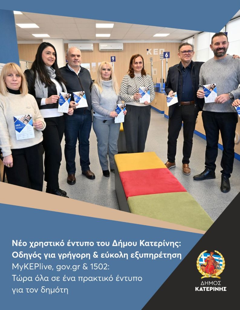 Στην έκδοση και κυκλοφορία ενός νέου χρηστικού εντύπου, με στόχο την αναλυτική ενημέρωση των δημοτών για τους σύγχρονους τρόπους εξυπηρέτησης από το ΚΕΠ, χωρίς ταλαιπωρία και άσκοπες μετακινήσεις προχώρησε η Αντιδημαρχία Διοικητικών Υπηρεσιών του Δήμου Κατερίνης.