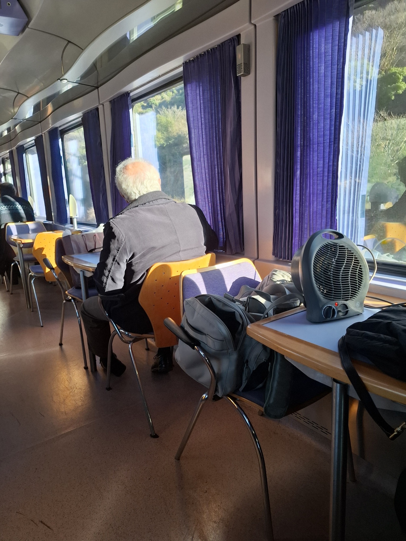 Ταξιδεύω αυτή τη στιγμή στη γραμμή Αθήνα – Θεσσαλονίκη, IC 50, και βρίσκομαι στο βαγόνι του κυλικείου ενός σύγχρονου (λέμε τώρα) ελληνικού τρένου. Θέρμανση: ανύπαρκτη, γιατί προφανώς το κρύο θεωρείται εμπειρία. Ο επιβάτης που κάθεται δίπλα μου, βρήκε τη λύση …