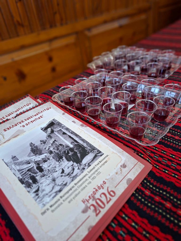 Σε ιδιαίτερα θερμό και επετειακό κλίμα πραγματοποιήθηκε σήμερα το πρωί, στην Πολιτιστική Στέγη του Συλλόγου Κοκκινοπλιτών Ν.Πιερίας “Ο Όλυμπος” , η εκδήλωση κοπής της βασιλόπιτας του Συλλόγου . Η φετινή συνάντηση συνέπεσε με τη συμπλήρωση εβδομήντα πέντε (75) ετών από την ίδρυση του Συλλόγου, γεγονός που προσέδωσε στην εκδήλωση έντονο επετειακό και συμβολικό χαρακτήρα. Την πίτα ευλόγησε ο Κοκκινοπλίτης Ιερέας Πατήρ Ευάγγελος Ζαρωτής.