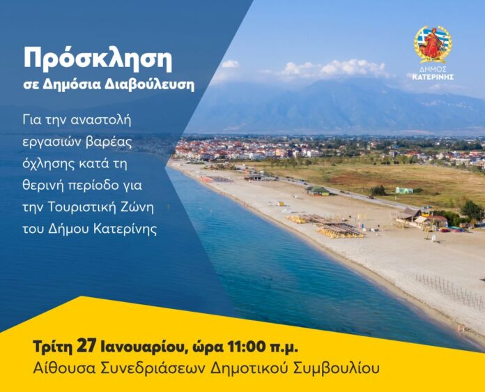 Καλούμε τους εκπροσώπους όλων των εμπλεκομένων φορέων στον κλάδο του Τουρισμού και των Κατασκευαστικών (οικοδομικές εργασίες κ.ά.), καθώς και των Εμπορικών Συλλόγων να προσέλθουν στην αίθουσα Συνεδριάσεων Δημοτικού Συμβουλίου, (αύριο) Τρίτη 27/01/2026 και ώρα 11:00 π.μ. προκειμένου να συμμετέχουν στη διαβούλευση που θα πραγματοποιηθεί, καταθέτοντας προφορικά και εγγράφως τις απόψεις τους.
