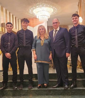 Αναμνηστική φωτογραφία της κα Άννας Μάνη-Παπαδημητρίου με τον Διευθυντή του ΓΕΛ Κάτω Μηλιάς κ. Πολύζο Αθανάσιο και το Προεδρείο του 15μελούς μαθητικού συμβουλίου