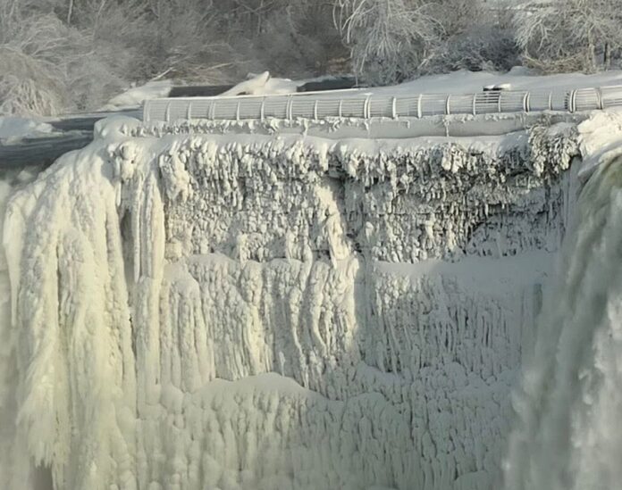 Με το χιόνι και το κρύο που επικρατεί στο νότιο Οντάριο, η Niagara Parks αναφέρει ότι οι καταρράκτες έχουν παγώσει εν μέρει, δημιουργώντας «εκθαμβωτικές» παγωμένες σχηματισμούς και μια «παγωμένη ομίχλη».