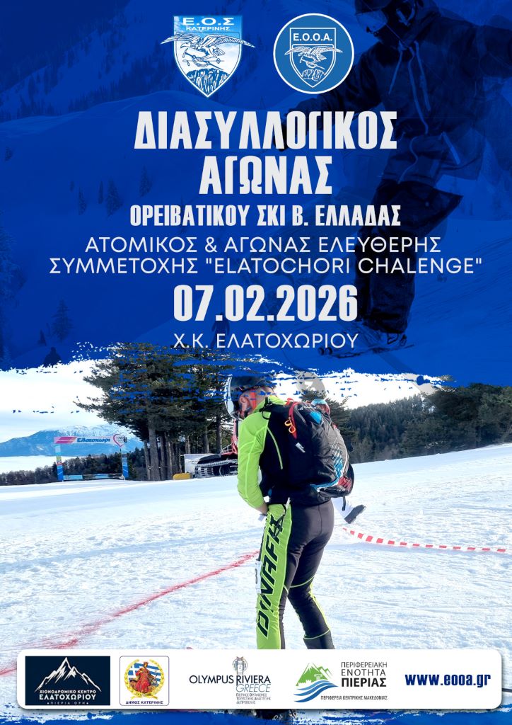Ο  Πιερικός Οργανισμός Τουριστικής Ανάπτυξης και Προβολής (Π.Ο.Τ.Α.Π.) συμμετέχει ενεργά ως συνδιοργανωτής στον Διασυλλογικό Αγώνα Ορειβατικού Σκι Βορείου Ελλάδος, που θα διεξαχθεί το Σάββατο 7 Φεβρουαρίου 2026 στο Ελατοχώρι Πιερίας, μία περιοχή με ιδιαίτερη δυναμική στον ορεινό και χειμερινό τουρισμό.