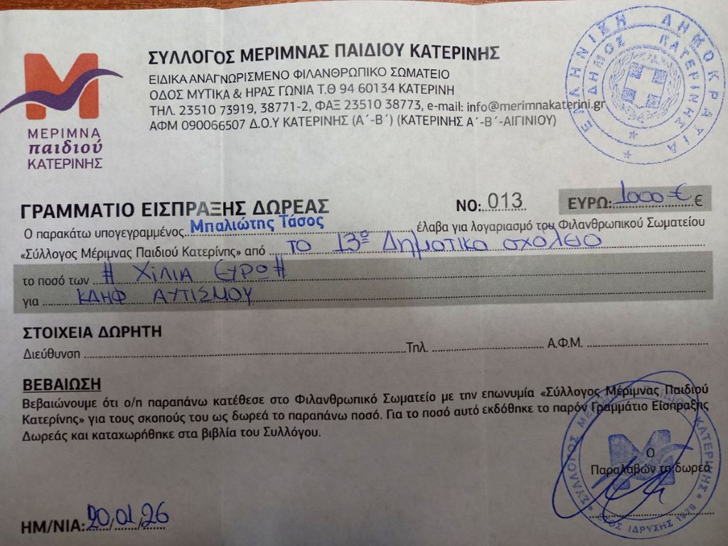 Η δράση αυτή υλοποιήθηκε με τη συμμετοχή και τη στήριξη των μαθητών, των γονέων και των εκπαιδευτικών του 13ου Δημοτικού Σχολείου Κατερίνης, αποδεικνύοντας έμπρακτα ότι η σχολική κοινότητα λειτουργεί με ενότητα και ανθρωπιά.