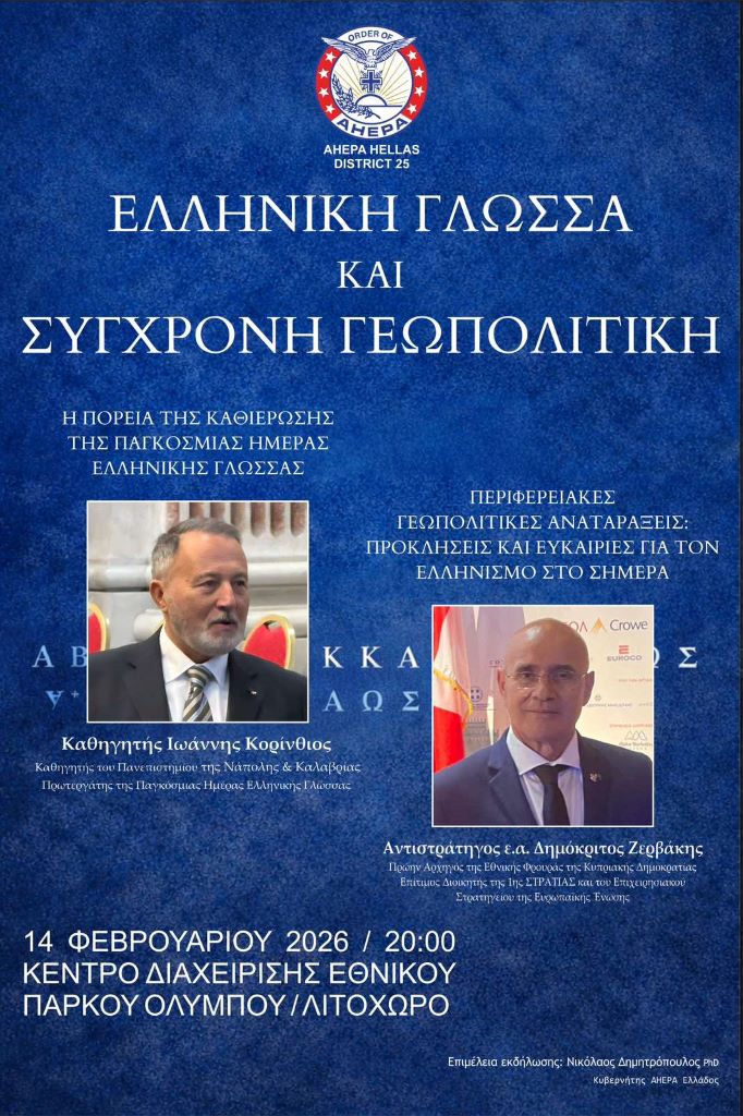 Στο περιθώριο των εργασιών του συνεδρίου το Σάββατο στις 8 μ μ σε εκδήλωση ανοικτή για το κοινό στον ίδιο φιλόξενο χώρο του Διαχείρισης Εθνικού Δρυμού Ολύμπου θα τιμηθεί ο καθηγητής & πρωτεργάτης της καθιέρωσης της Παγκόσμιας Ημέρας Ελληνικής Γλώσσας (ψηφίστηκε ομόφωνα από την UNESCO το 2025) Ιωάννης Κορίνθιος ενώ ο Αντιστράτηγος ε.α. Δημόκριτος Ζερβάκης θα είναι ομιλητής σε διάλεξη με τίτλο « σύγχρονες γεωπολιτικές εξελίξεις»