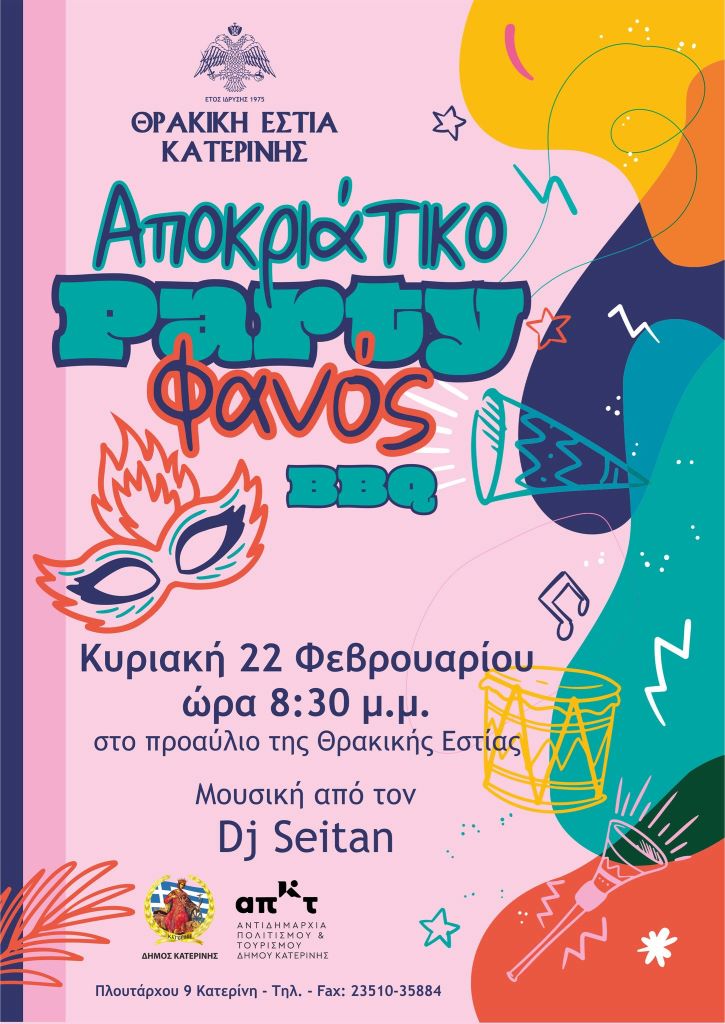 20:30  ΘΡΑΚΙΚΗ ΕΣΤΙΑ ΚΑΤΕΡΙΝΗΣ (στο χώρο του συλλόγου)