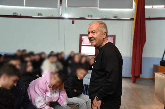 Ο κ. Παπαϊωάννου μοιράστηκε με τους μαθητές και τις μαθήτριες τις πολύτιμες εμπειρίες του από τα γήπεδα, εστιάζοντας στις θεμελιώδεις αξίες που πρεσβεύει ο αθλητισμός, όπως: