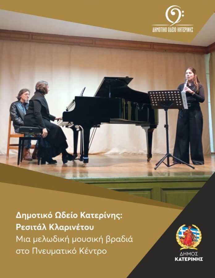 Συναυλία κλαρινέτου και πιάνου διοργανώθηκε στο πλαίσιο των καλλιτεχνικών δράσεων του Δημοτικού Ωδείου. Το κοινό είχε την ευκαιρία την Πέμπτη 05/03, να απολαύσει ένα απαιτητικό πρόγραμμα από το διεθνές ρεπερτόριο.