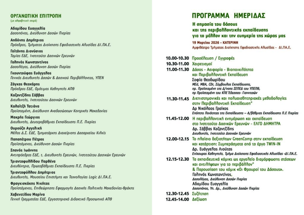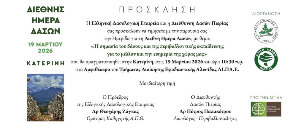 Αρχική Κατερίνη Διεύθυνση Δασών Πιερίας: Ημερίδα για την Διεθνή Ημέρα Δασών | 19.03.2026