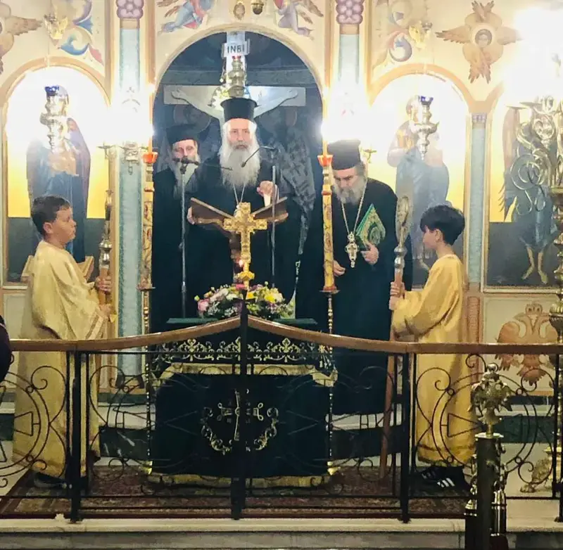 Το Τίμιο Ξύλο μετέφερε ο Πρωτοπρεσβύτερος π. Κυριάκος Κοκελίδης, ο οποίος, μετά το πέρας του Πανηγυρικού Εσπερινού, κήρυξε τον Θείο Λόγο.