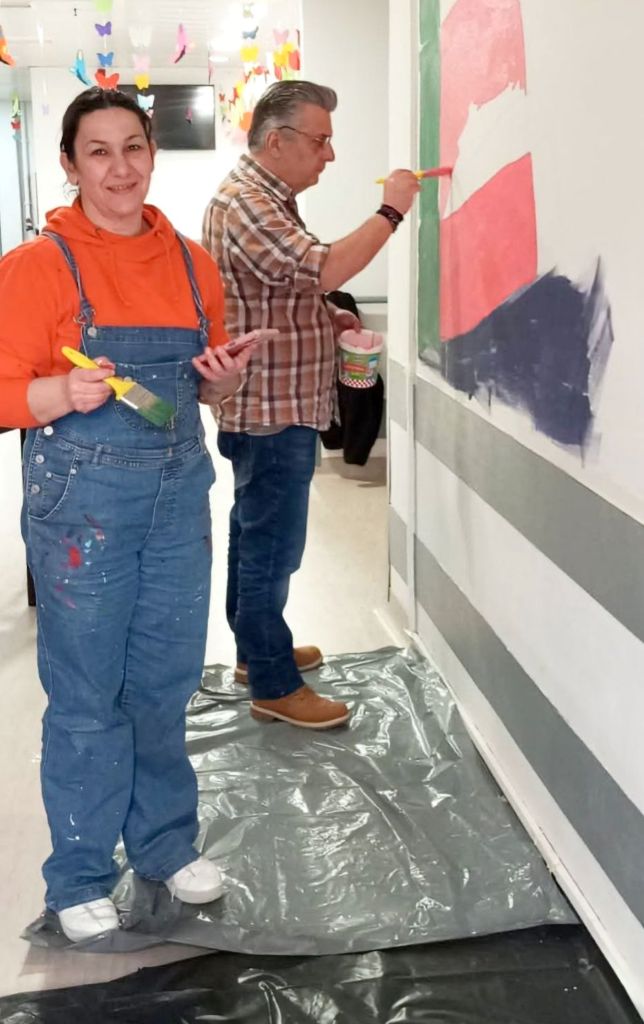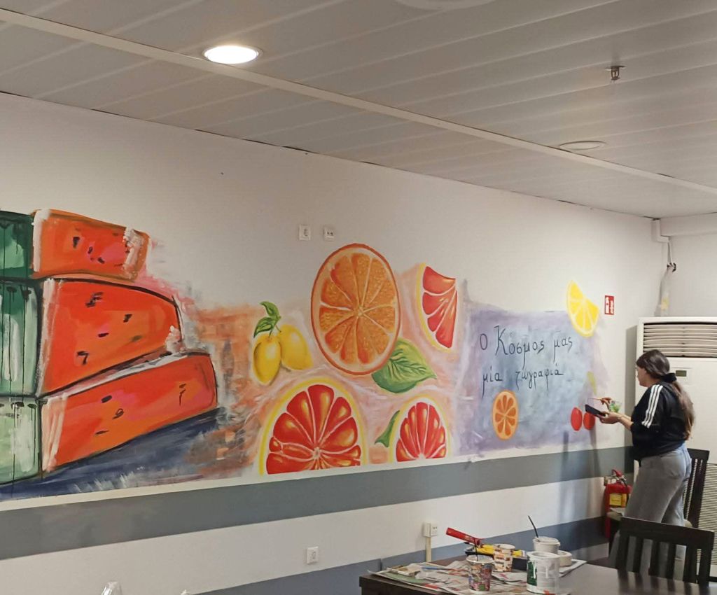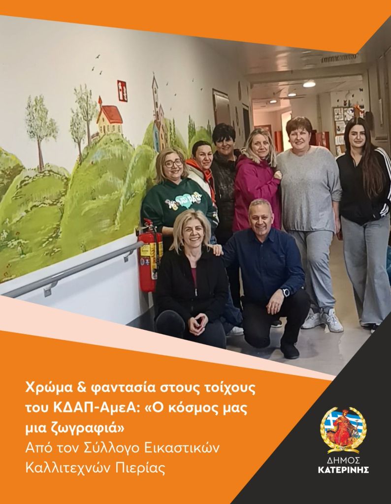 Με τις δημιουργικές πινελιές τους, με μία έκρηξη χρωμάτων και φαντασίας, τα μέλη του Συλλόγου Εικαστικών Καλλιτεχνών Πιερίας μεταμόρφωσαν τους τοίχους του ΚΔΑΠ-ΑμεΑ Δήμου Κατερίνης.