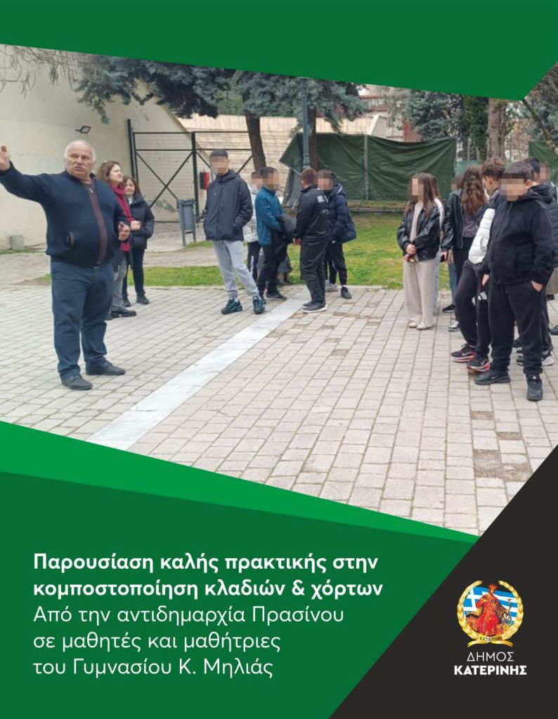 «Με την προτροπή του Δημάρχου, Ι. Ντούμου, η ενημέρωση, η ευαισθητοποίηση και η εθελοντική ενεργοποίηση των κατοίκων και ιδιαίτερα των μαθητών – μαθητριών του Δήμου Κατερίνης, σε θέματα αειφόρου ανάπτυξης, παραγωγής κομπόστ και προστασίας του περιβάλλοντος, τίθενται στο επίκεντρο των δράσεων μας» τονίζει ο αντιδήμαρχος Πρασίνου, Κώστας Τσιουκάνης.