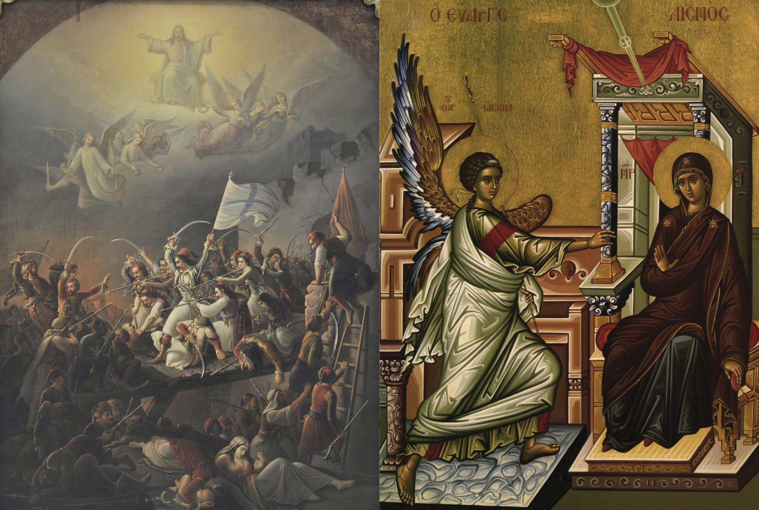 Διπλή επέτειος για τον ελληνισμό. Την 25η Μαρτίου ο αρχάγγελος Γαβριήλ μεταφέρει το χαρμόσυνο άγγελμα της σωτηρίας του ανθρωπίνου γένους από την αμαρτία. Μεταφέρει εις την άσημη, τότε, παιδούλα την απόφαση του Θεού να γίνει η μητέρα του μονογενούς Υιού Του δηλαδή του Ιησού Χριστού. Η υπέραγνος Παναγία ταπεινά λέγει Γένοιτο το θέλημά Σου. Εκπληρώνεται η υπόσχεση του Θεού προς πρωτόπλαστους Αδάμ και Εύα που έδωσε όταν τους έβγαζε από τον παράδεισο εξ αιτίας του προπατορικού αμαρτήματος. Το σχέδιο του Θεού για την σωτηρίας του ανθρώπου αρχίζει να παίρνει σάρκα και οστά.