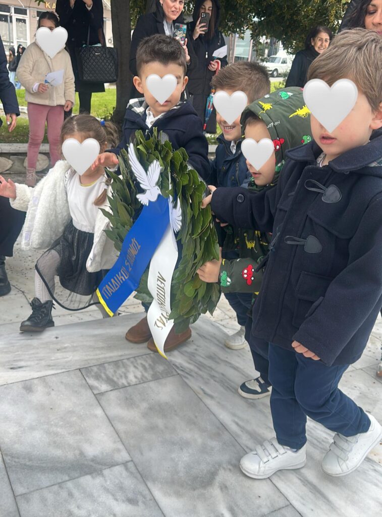 Τα μικρά μας συμμετέχουν σε μια χαρούμενη παρέλαση, κρατώντας σημαιάκια, χαμογελώντας περήφανα και καταθέτοντας στεφάνι. Στη συνέχεια, μέσα από ένα μικρό θεατρικό, γνώρισαν με απλό και κατανοητό τρόπο την ιστορία της πατρίδας μας. Οι χειροτεχνίες τους γέμισαν τον χώρο με χρώματα, καθώς δημιουργούν σημαιούλες, τσολιαδάκια και όμορφες κατασκευές εμπνευσμένες από την ημέρα.