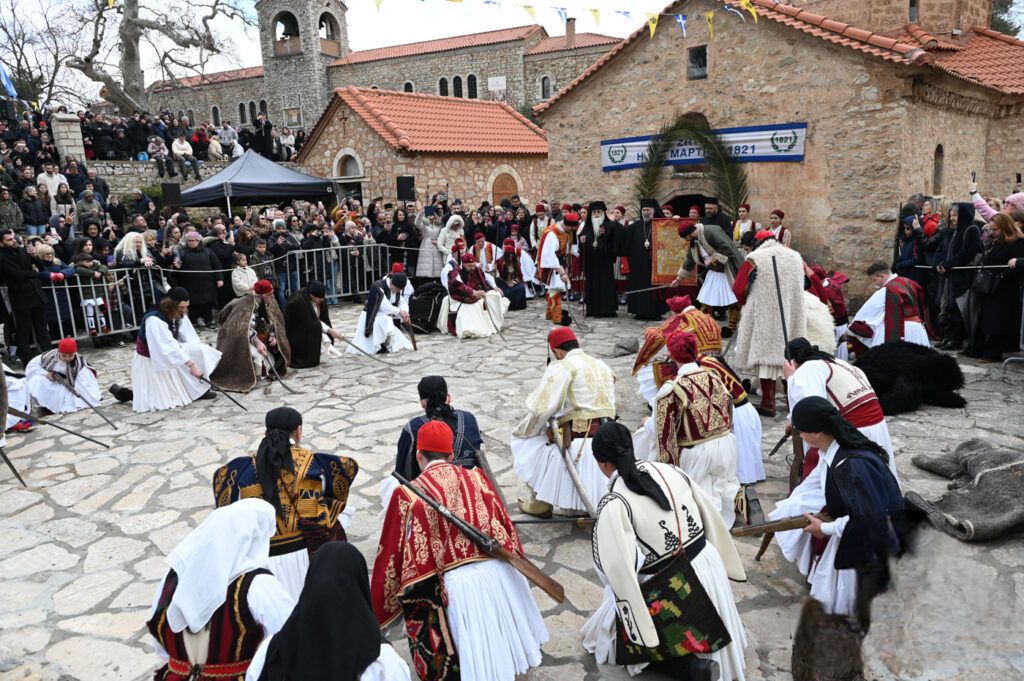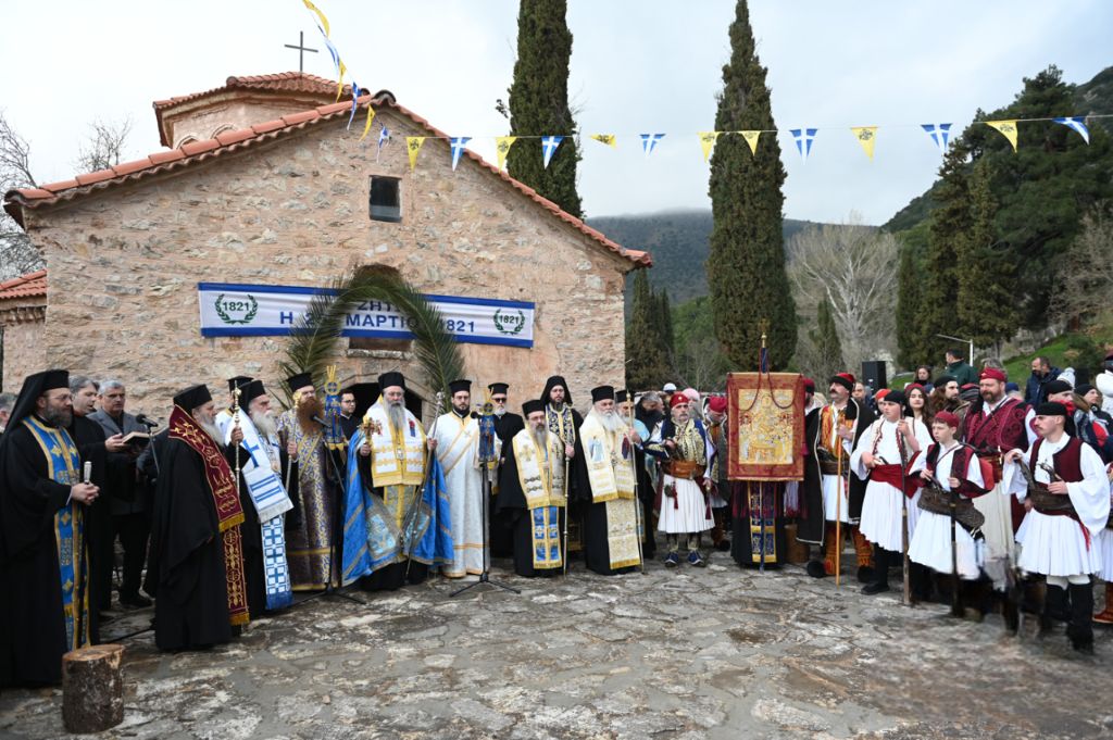 Το πρωί της εορτής τελέστηκε Αρχιερατικό Συλλείτουργο στο Καθολικό της Ιεράς Μονής. Μετά το πέρας της Θείας Λειτουργίας, συμμετείχε στην Επιμνημόσυνη Δέηση και το Τρισάγιο που τελέστηκαν στο Πανελλήνιο Ηρώο των Αγωνιστών του 1821, αποτίοντας φόρο τιμής στους ήρωες της Ελληνική Επανάσταση του 1821.