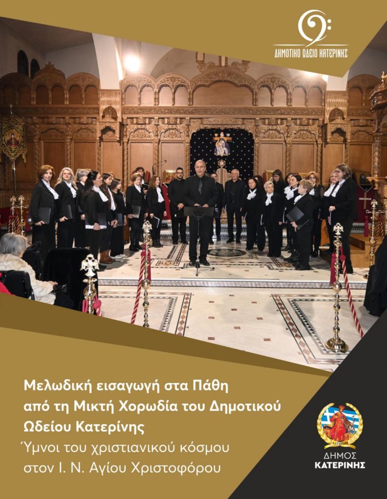 Ύμνους από τις διαφορετικές λειτουργικές παραδόσεις του χριστιανικού κόσμου, Ανατολής και Δύσης, παρουσίασε το απόγευμα του Σαββάτου 28/03, η Μικτή Χορωδία του Δημοτικού Ωδείου Κατερίνης, υπό τη διεύθυνση του μαέστρου του Δημοτικού Ωδείου, Ιωάννη Κούκα.