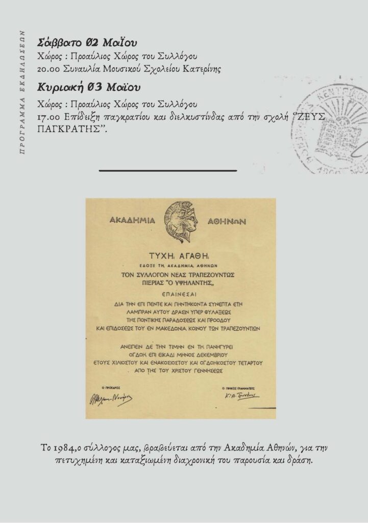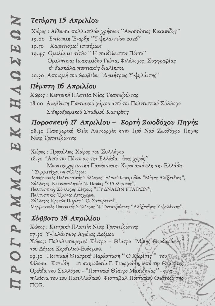 Αρχική Κατερίνη “Υψηλάντεια 2026” Νέα Τραπεζούντα Πιερίας | Πρόσκληση και Πρόγραμμα Εκδηλώσεων