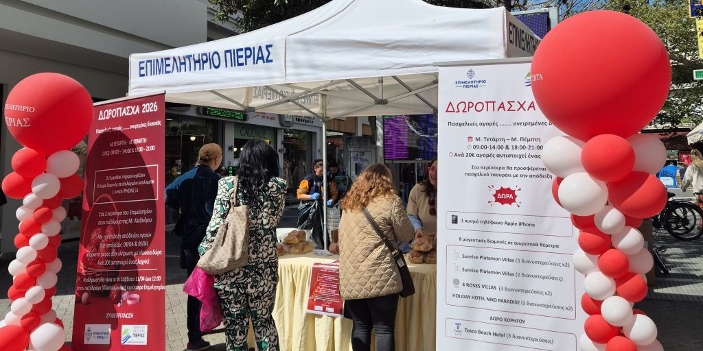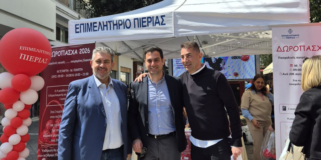 Με θερμή ανταπόκριση από το καταναλωτικό κοινό και τους επαγγελματίες ξεκίνησε σήμερα, Μ. Τετάρτη, 8 Απριλίου, η πασχαλινή δράση «ΔωροΠάσχα 2026», που υλοποιούν από κοινού το Επιμελητήριο και η Π. Ε. Πιερίας.