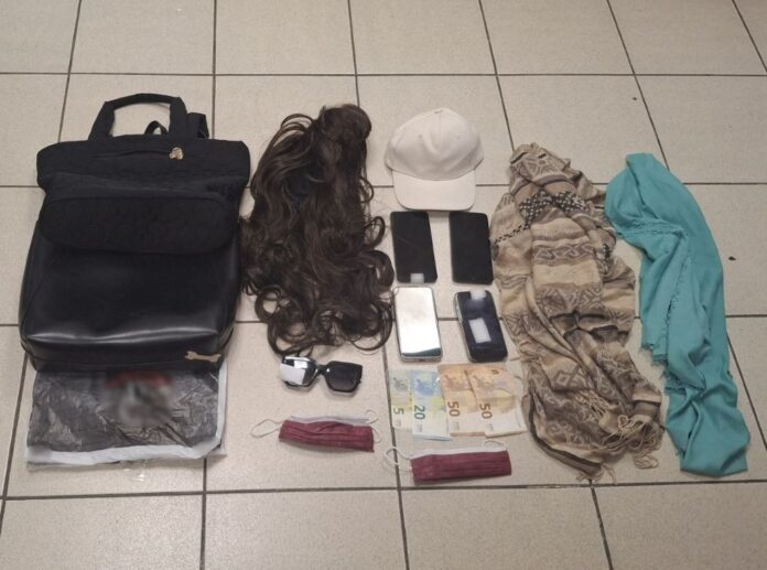 Από την κατοχή τους, καθώς και από το όχημα που επέβαιναν, κατασχέθηκαν 4 κινητά τηλέφωνα, το χρηματικό ποσό των 125 ευρώ, περούκα, χειρουργικές μάσκες και φουλάρια.